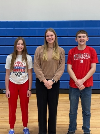 The February “Students of the Month” were announced in March. The students that received this award included senior Brayden Loeske, senior Elizabeth Hoffman, and seventh grader Emery Malena.