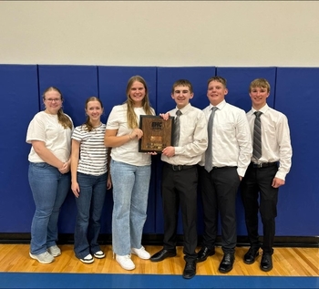 Sophomores Tyce Larson, Easton Brabec, and Cash Fehringer advanced to finals in their Agriculture Demonstration. In the end, they finished as State Runner-Up, placing 2nd! The team's demonstration consisted of showing the process of milking a cow, pasteurizing its milk, and making ice cream.