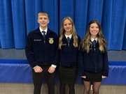In public speaking events, Jurnee Mullenhoff received a purple, qualifying for state in Creed Speaking. Kyler Hoesly, Lexi Bruhn, Harper Went, Bergan Settje, Ryan McMullin, Olivia Hake, Cooper Fehringer, and Ella Hansen qualified for state in their People in Ag posters. Many members such as Hannah Martensen, Luke Eisenmann, Daphne Jedlicka, Sadie Brabec and Wyatt Eisenmann also were finalists in their speaking events.